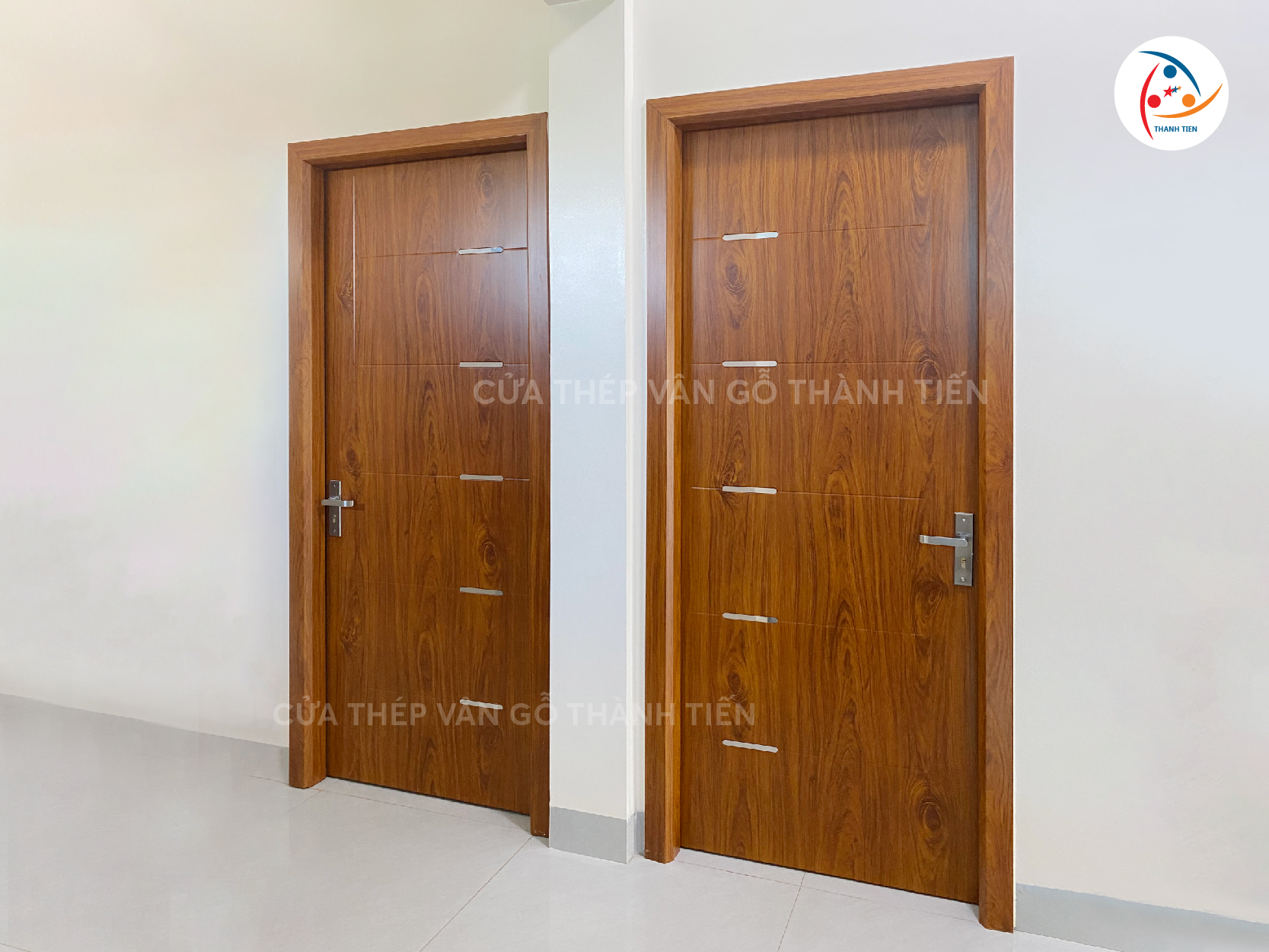 Hiện tại, Thành Tiến đang sản xuất trực tiếp và cung cấp đa dạng các loại cửa thép vân gỗ như: cửa 1 cánh, cửa 2 cánh, cửa 4 cánh, cửa sổ thép vân gỗ.