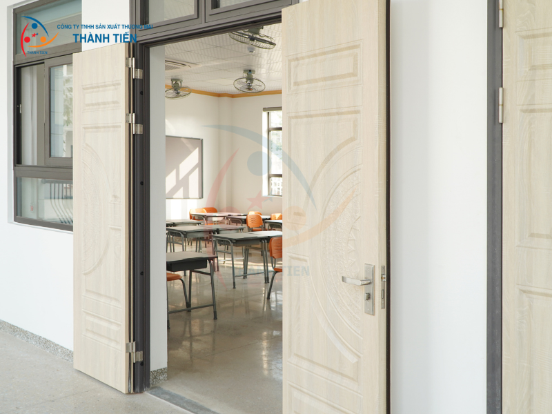 Với đặc thù của môi trường học đường, cửa công trình cần đáp ứng tốt các tiêu chí về độ bền, an toàn, khả năng cách âm và tính ổn định khi sử dụng lâu dài. Để phù hợp với yêu cầu này, Thành Tiến đã triển khai hệ thống gồm nhiều mẫu cửa khác nhau, bao gồm: